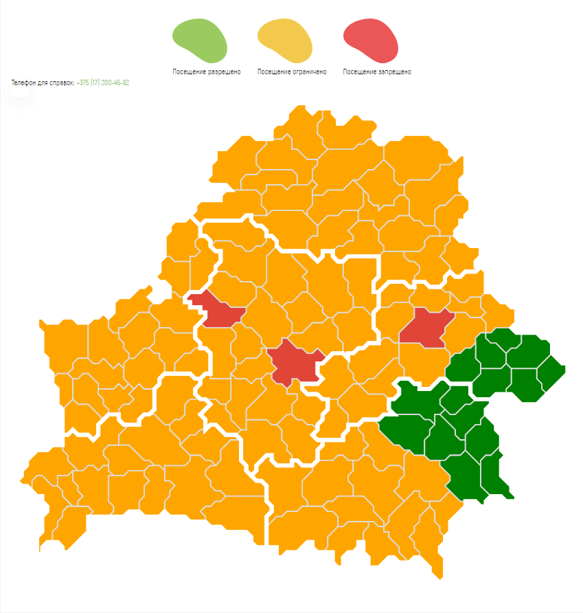 Актуальную информацию о выеденных ограничениях и запретах можно уточнить по ссылке : https://www.mlh.by/maps/map.php
